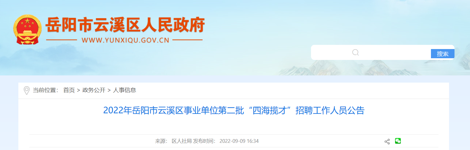 招聘公告在岳陽市云溪區(qū)人民政府網(wǎng)向社會公開發(fā)布。