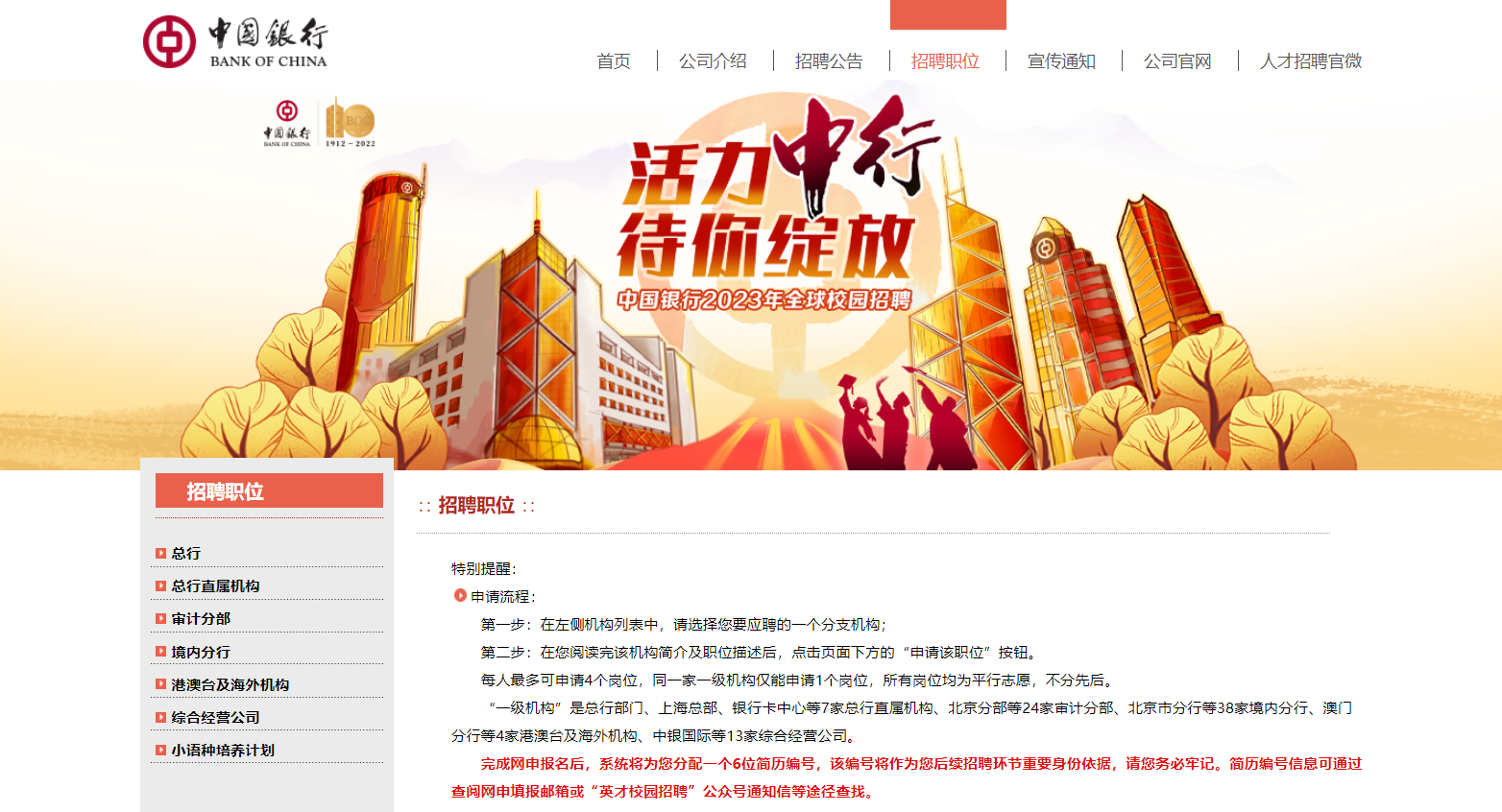 中國(guó)銀行2023全球校園招聘申請(qǐng)流程: