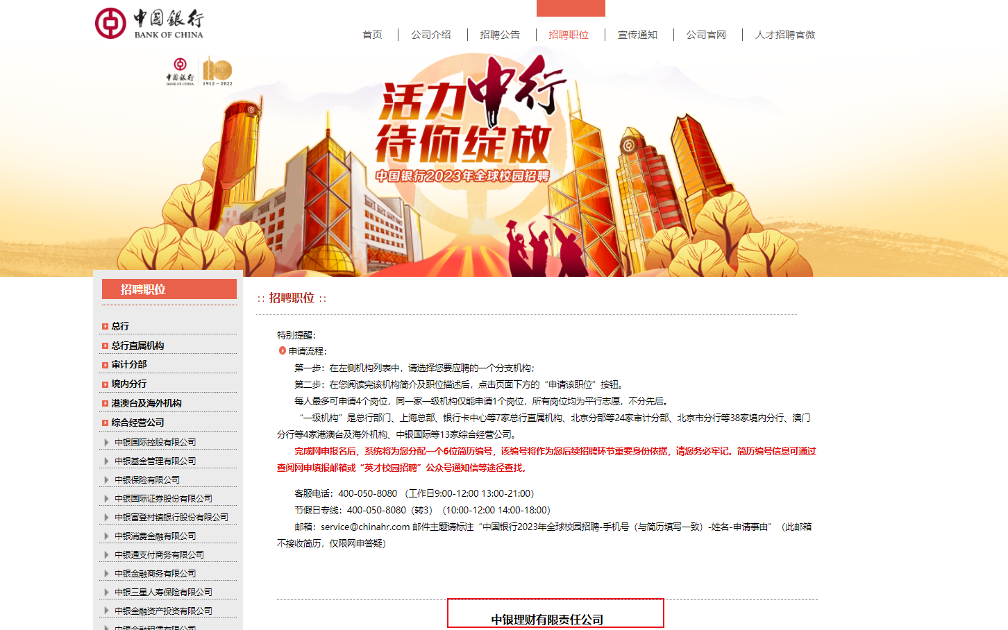 校園招聘專用郵箱:rlzyb_zylc@bank-of-china.com