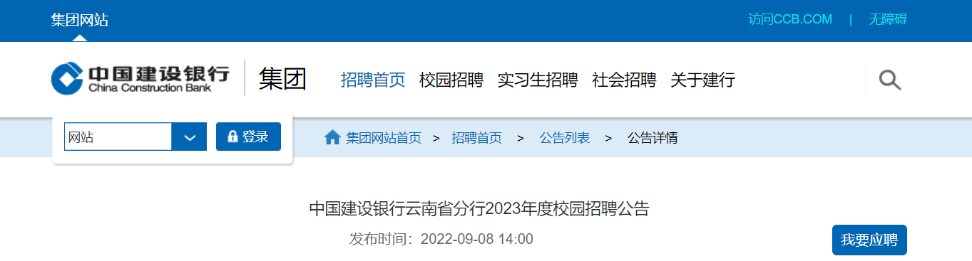 原文標題:中國建設(shè)銀行云南省分行2023年度校園招聘公告