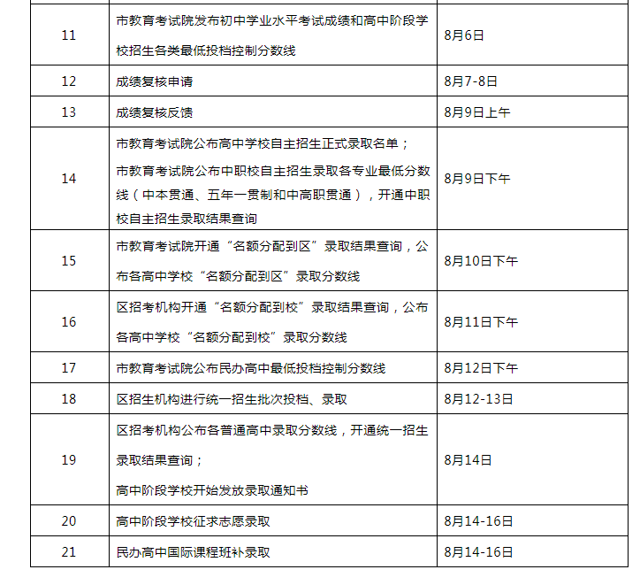 8月25日:區(qū)招考機(jī)構(gòu)公布各普通高中錄取分?jǐn)?shù)線,開通統(tǒng)一招生錄取結(jié)果查詢;高中階段學(xué)校開始發(fā)放錄取通知書