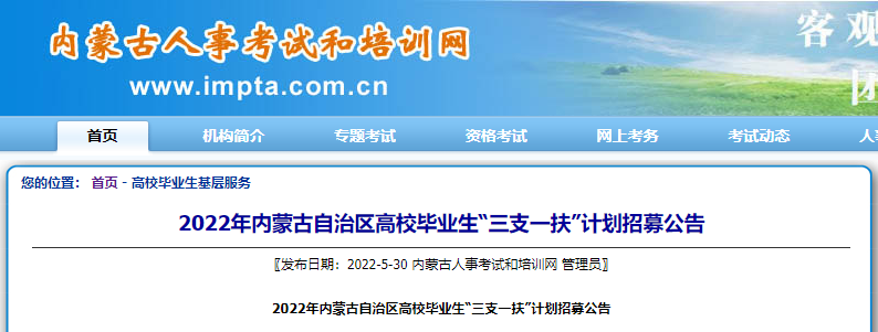 從內(nèi)蒙古人事考試和培訓(xùn)網(wǎng)獲悉,《2022年內(nèi)蒙古自治區(qū)高校畢業(yè)生“三支一扶”計劃招募公告》現(xiàn)已公布!2022年內(nèi)蒙古三支一扶相關(guān)政策及待遇保障如下: