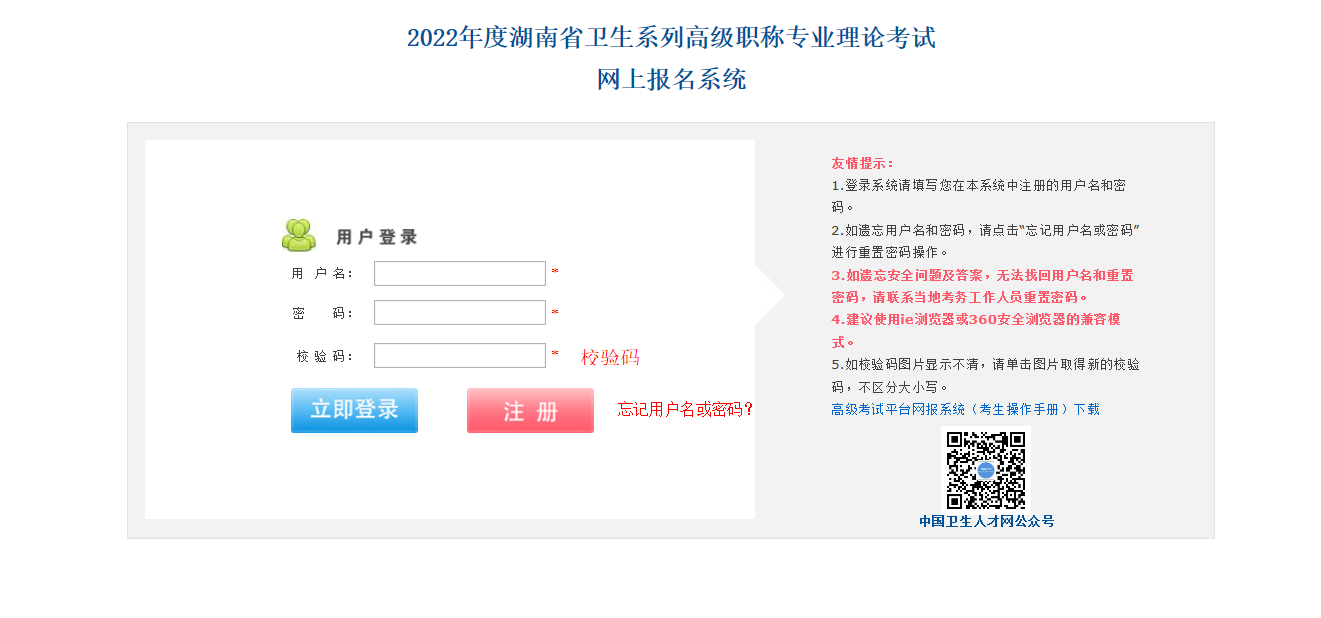 點擊進入>>>2022年湖南衛(wèi)生系列高級職稱專業(yè)理論考試報名入口