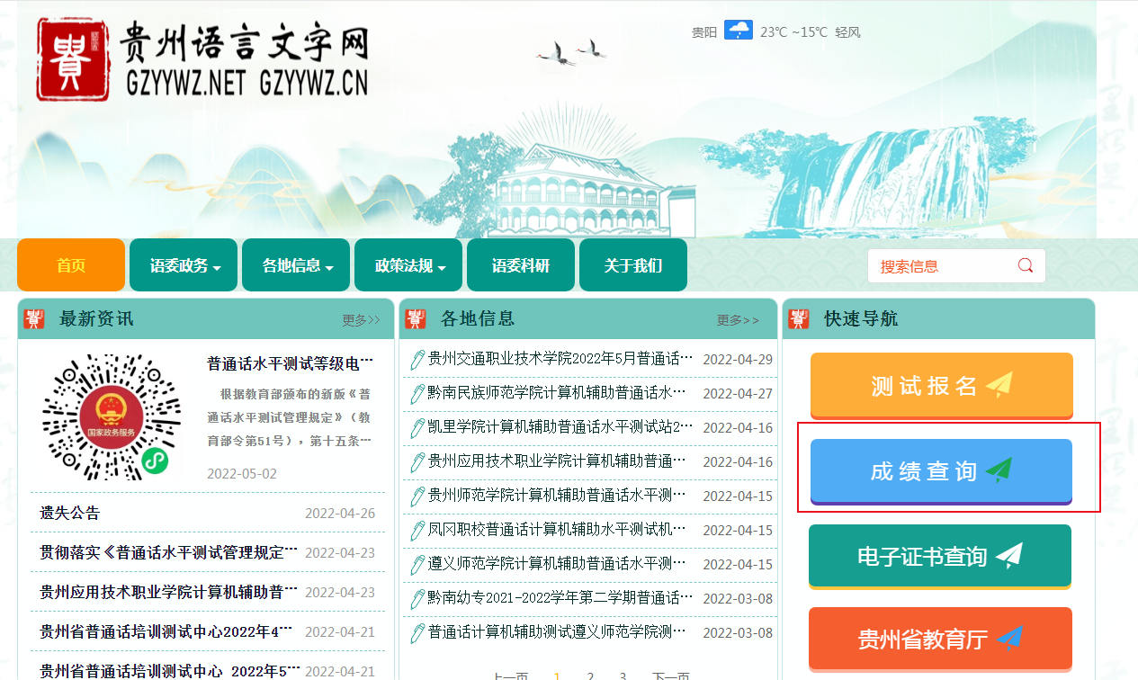 點(diǎn)擊進(jìn)入>>>2022年6月貴州普通話成績查詢?nèi)肟?BR>