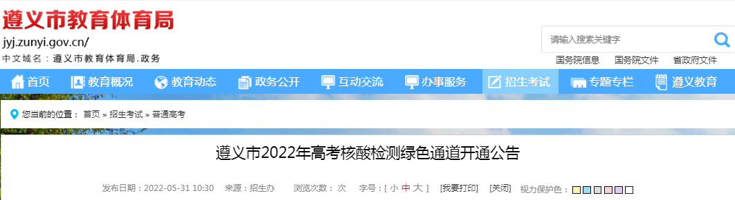 從遵義市教育體育局了解到,貴州遵義2022年高考核酸檢測綠色通道開通公告已發(fā)布,詳細(xì)內(nèi)容如下: