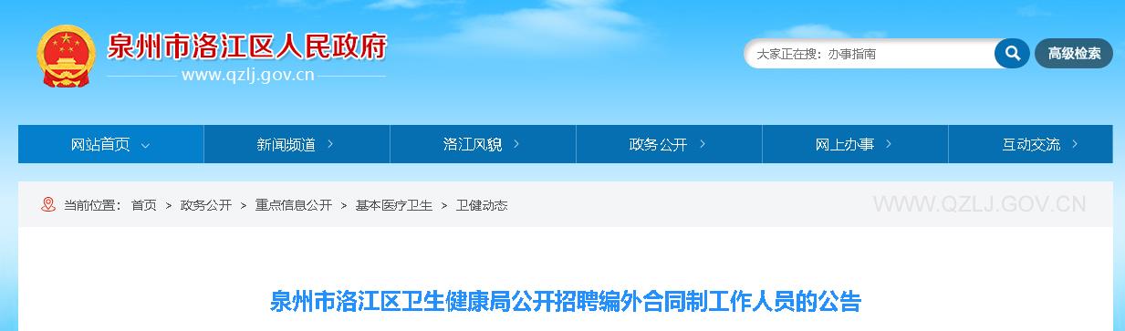 2021福建泉州市洛江區(qū)衛(wèi)生健康局招聘編外合同制人員1人,報名時間:2021年9月26日上午8:30至2021年9月30日下午18:00,現(xiàn)將招聘公告原文發(fā)布如下: