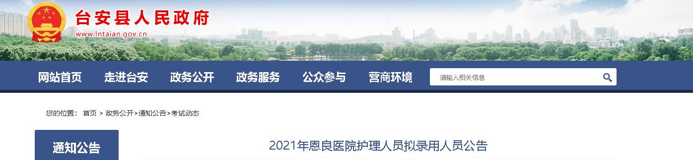 2021遼寧鞍山市臺安縣恩良醫(yī)院護理人員擬錄用公告已出,公示時間:2021年9月27日-2021年10月3日(7日),現(xiàn)將招聘公告原文發(fā)布如下: