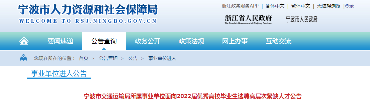 2022浙江省寧波市交通運(yùn)輸局所屬事業(yè)單位面向高校畢業(yè)生選聘公告已發(fā)布。系統(tǒng)報(bào)名時間:2021年10月11日9時至16日12時。為您整理了招聘條件和報(bào)名流程,供您參考。