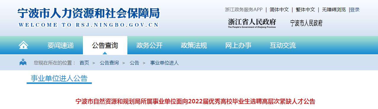 2022屆寧波市自然資源和規(guī)劃局所屬事業(yè)單位面向優(yōu)秀高校畢業(yè)生選聘崗位表