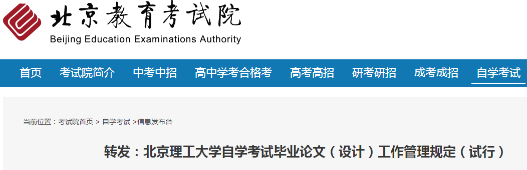 【 #自考# #北京理工大學(xué)自學(xué)考試畢業(yè)論文(設(shè)計(jì))工作管理規(guī)定(試行)#】從北京教育考試院了解到,北京理工大學(xué)自學(xué)考試畢業(yè)論文(設(shè)計(jì))工作管理規(guī)定(試行),具體如下: