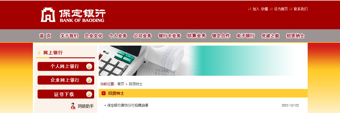 2021保定銀行河北廊坊分行招聘若干人,報名時間:2022年1月3日截止,現(xiàn)將招聘公告原文發(fā)布如下:
