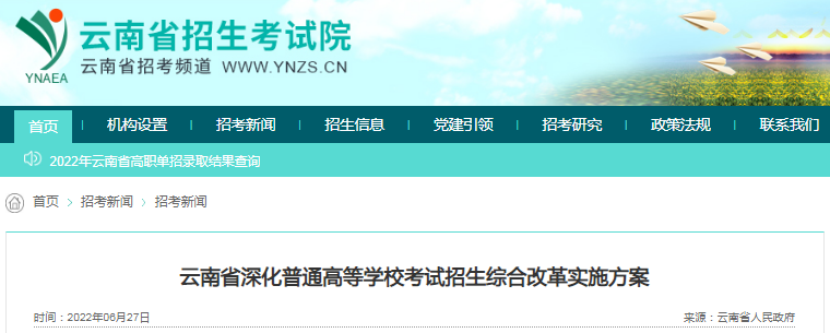 從云南省招生考試院了解到,2022年云南省深化普通高等學??荚囌猩C合改革實施方案已發(fā)布,詳細內(nèi)容如下: