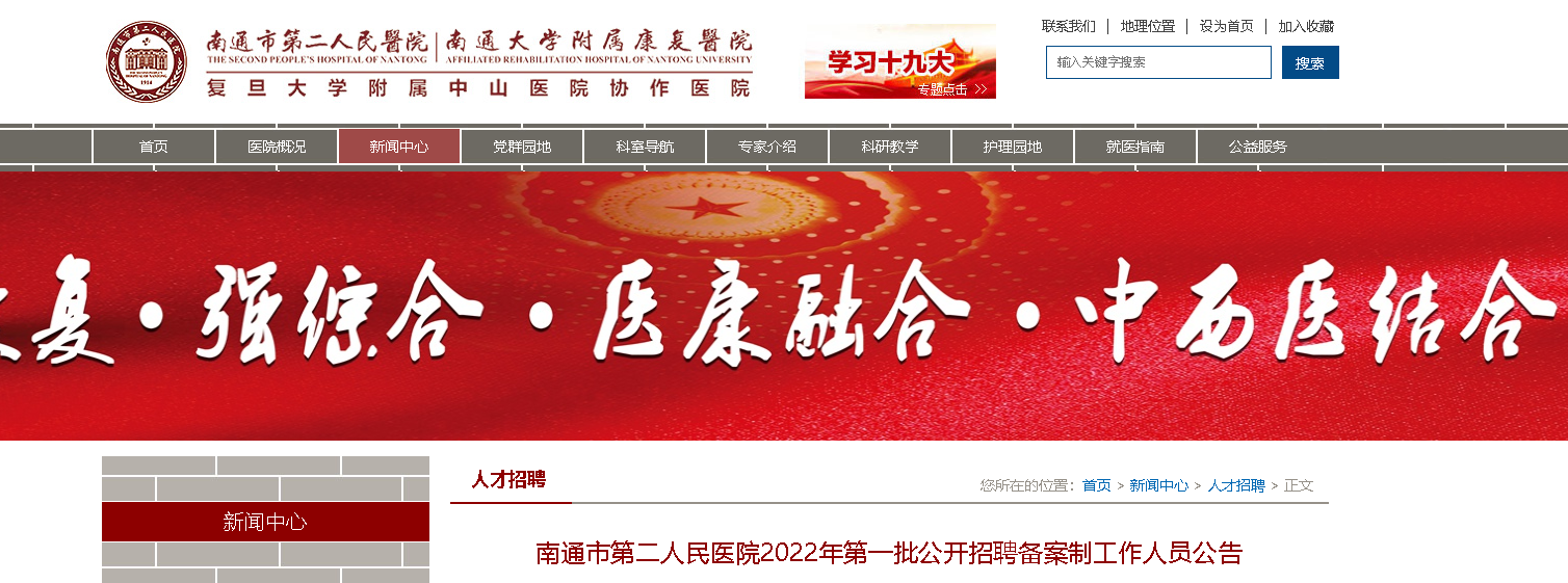 7.筆試、資格復(fù)審、面試、體檢等后續(xù)流程安排,均將在南通市第二人民醫(yī)院網(wǎng)站公布,請(qǐng)應(yīng)聘人員及時(shí)關(guān)注網(wǎng)站通知,做好每一步的應(yīng)聘準(zhǔn)備,逾期者責(zé)任自負(fù)。