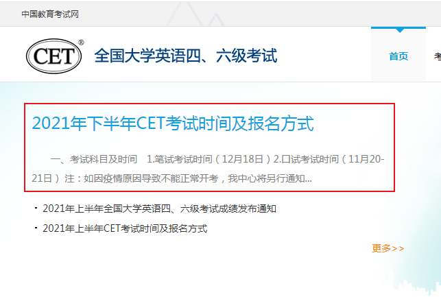 從中國教育考試網(wǎng)發(fā)布的《2021下半年英語四六級考試時間及報名方式》、《2021下半年全國大學(xué)英語四、六級考試(CET)考生須知》、《2021下半年全國大學(xué)英語四、六級考試口語考試(CET-SET)考生須知》得知,2021下半年北京英語六級報名時間、條件及入口已公布,即日起報名,具體詳情如下: