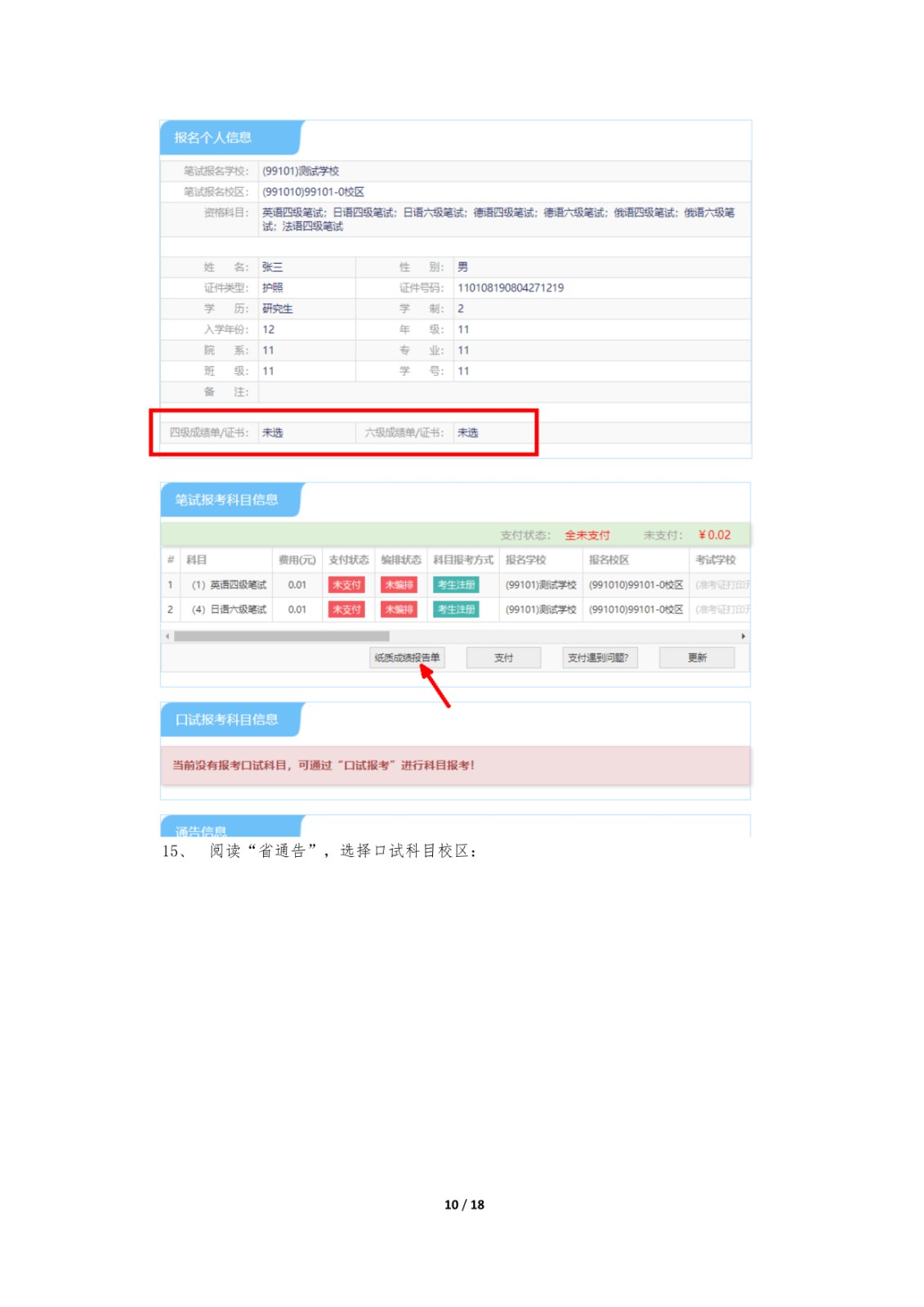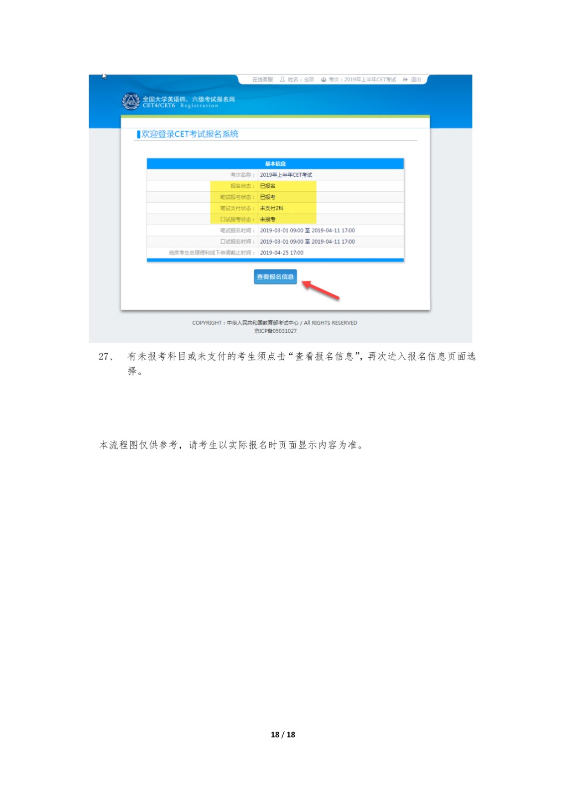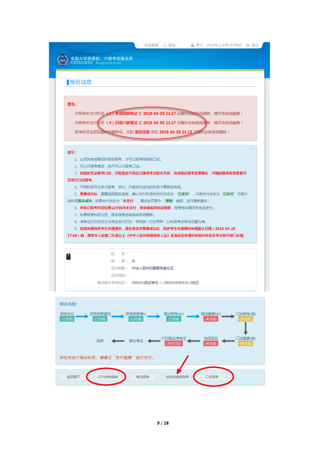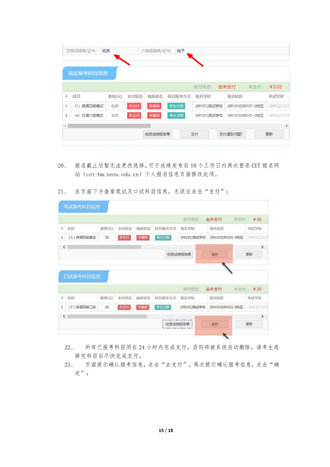 報名與繳費地址:http://cet-bm.neea.edu.cn??忌鷪竺绊氄J(rèn)真閱讀并充分了解網(wǎng)站首頁的考生須知、報名流程、常見問題、成績報告單、新動態(tài)等相關(guān)信息,同時,務(wù)必關(guān)注本校報名通知。