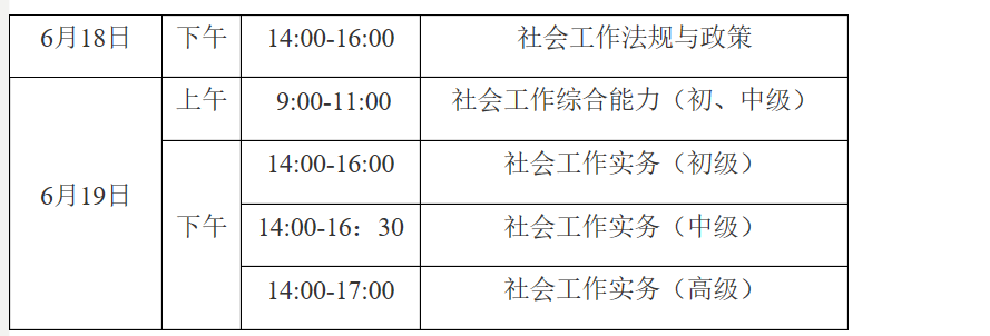從貴州省人事考試信息網(wǎng)發(fā)布的《 2022年貴州社會(huì)工作者職業(yè)水平考試相關(guān)工作的通知》得知,2022年貴州社會(huì)工作者職業(yè)水平考試時(shí)間及科目已公布,考試時(shí)間為6月18日-6月19日,具體詳情如下: