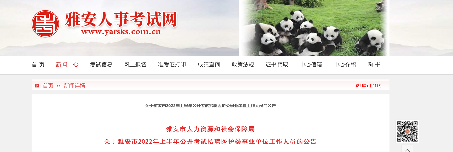 根據(jù)《雅安市事業(yè)單位公開招聘工作人員實(shí)施辦法》和《雅安市事業(yè)單位公開招聘工作人員面試工作管理辦法》規(guī)定,現(xiàn)將我市2022年度上半年公開考試招聘醫(yī)護(hù)類事業(yè)單位工作人員有關(guān)事項(xiàng)公告如下: