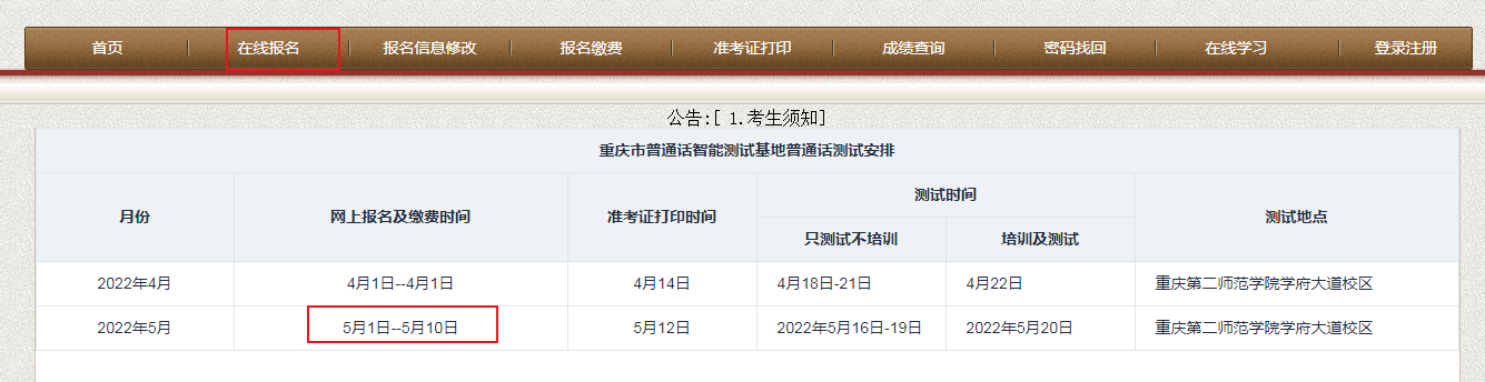 點擊進入>>>重慶市國家通用語言文字培訓基地2022年5月普通話報名入口