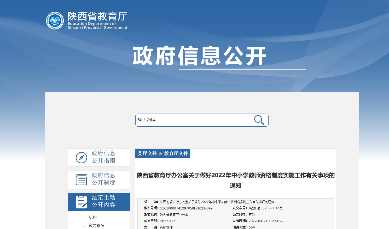 從陜西省教育廳獲悉,2022年陜西中小學(xué)教師資格制度實施工作有關(guān)事項的通知已公布,請相關(guān)人員仔細(xì)閱讀,具體詳情如下: