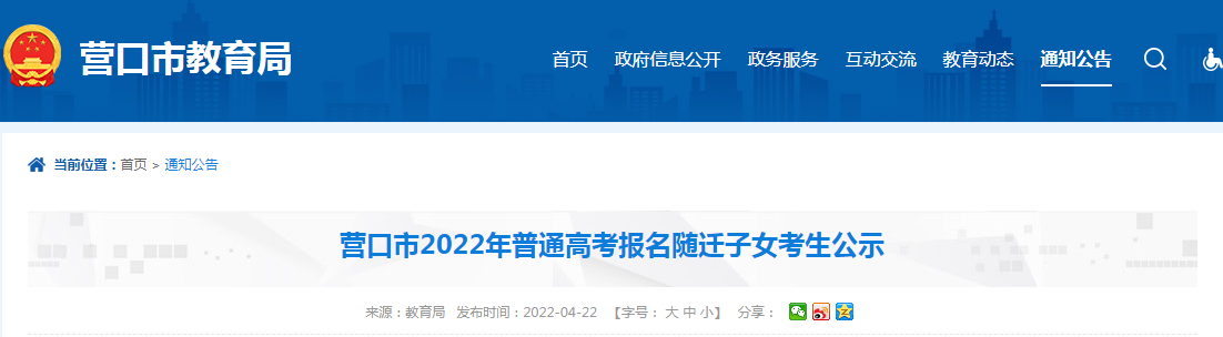 從營(yíng)口市教育局了解到,遼寧營(yíng)口市2022年普通高考報(bào)名隨遷子女考生公示已發(fā)布,詳細(xì)內(nèi)容如下: