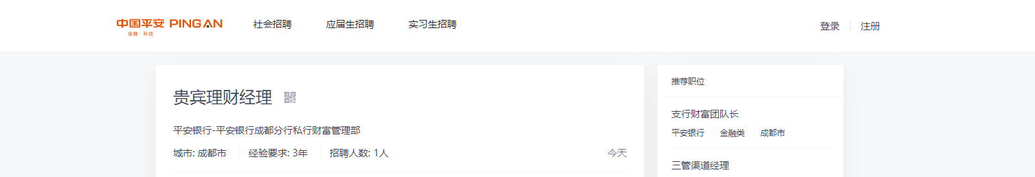 2022平安銀行四川成都分行貴賓理財經(jīng)理社會招聘1人,現(xiàn)將招聘詳情發(fā)布如下: