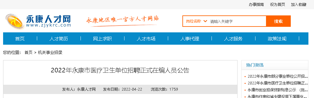 根據(jù)永康市醫(yī)療衛(wèi)生事業(yè)發(fā)展的需求,為公開、公平、公正、擇優(yōu)招聘正式在編2022年醫(yī)學(xué)衛(wèi)生類專業(yè)技術(shù)人員,現(xiàn)將有關(guān)招聘事項(xiàng)公告如下: