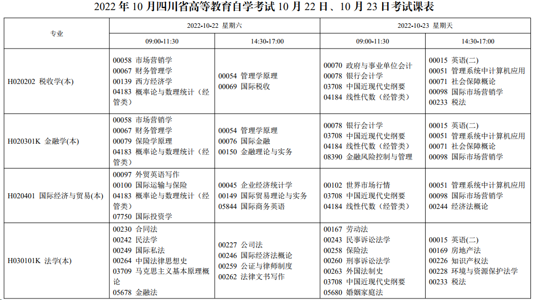 1.2022年10月四川省高等教育自學(xué)考試10月22日、10月23日考試課表(下載)