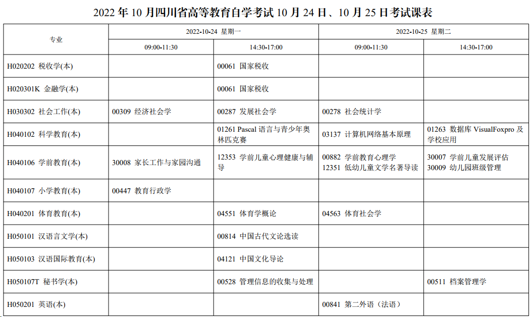 3.2022年10月四川省高等教育自學(xué)考試10月24日、10月25日考試課表(下載)
