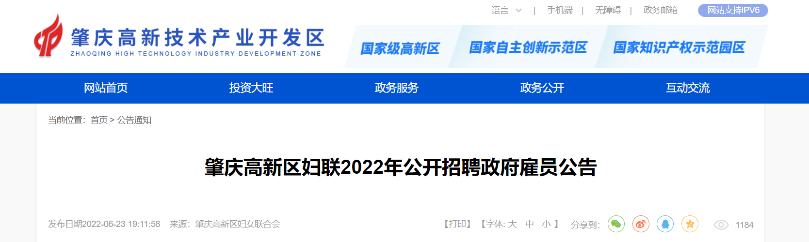 2022年肇慶高新區(qū)婦聯(lián)公開招聘政府雇員崗位表