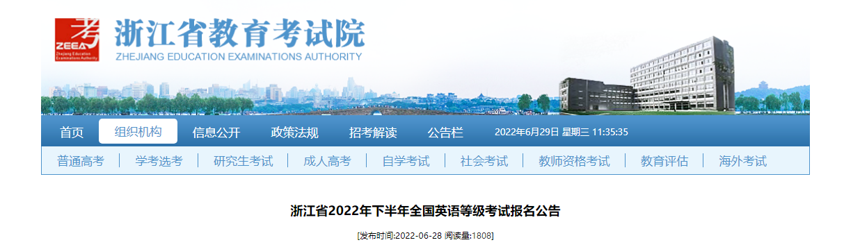 從浙江省教育考試院獲悉,2022年下半年浙江全國(guó)英語(yǔ)等級(jí)考試報(bào)名公告已公布,請(qǐng)相關(guān)人員仔細(xì)閱讀,具體詳情如下: