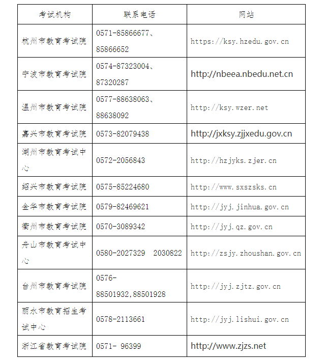 有關(guān)教育考試機(jī)構(gòu)聯(lián)系電話(huà)和網(wǎng)站