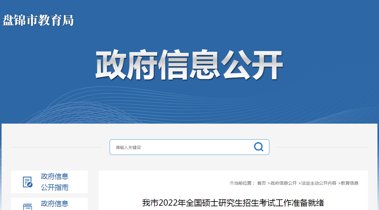 從盤錦市教育局了解到,遼寧盤錦2022年全國(guó)碩士研究生招生考試工作準(zhǔn)備就緒,詳細(xì)內(nèi)容如下:
