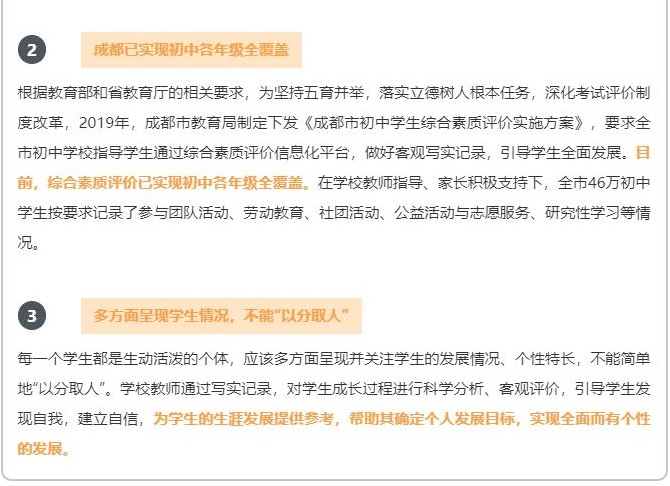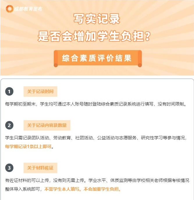 日前,成都教育發(fā)布為大家?guī)砹顺啥际兄袑W(xué)生綜合素質(zhì)評價系統(tǒng)微信端暖心上線的好消息。近日,我們收到了家長的來信綜合素質(zhì)評價結(jié)果會在什么地方派上用場?