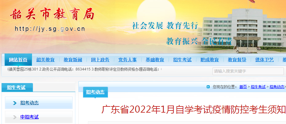 從廣東省韶關市教育局了解到,廣東2022年1月自學考試疫情防控考生須知,具體如下: