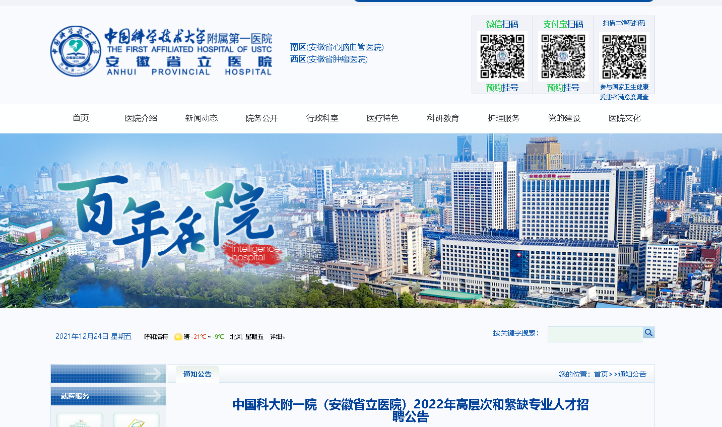 2022年安徽省立醫(yī)院專業(yè)人才招聘195人,報名時間:2021年12月23日至2020年1月10日,現(xiàn)將招聘公告原文發(fā)布如下:
