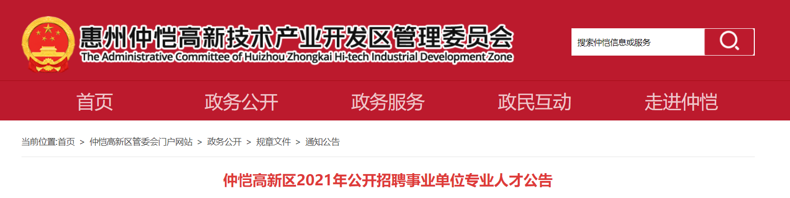 (1)報考人員須認(rèn)真閱讀公告及《仲愷高新區(qū)2021年公開招聘事業(yè)單位專業(yè)人才報考指南》(附件3)要求,準(zhǔn)確把握報考崗位的具體條件??忌鷳?yīng)踐行誠信報考,報名時應(yīng)確保所填各項信息真實有效。凡以虛假信息報名的,一經(jīng)查實即取消考試及聘用資格。