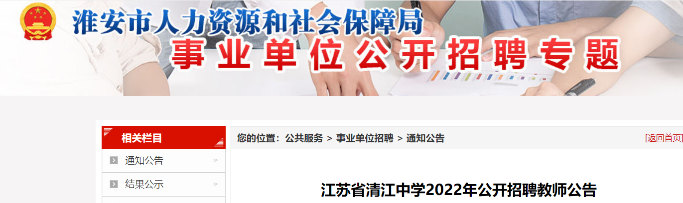 【點擊進入:2022年江蘇淮安市清江中學(xué)公開招聘教師40人報名入口】