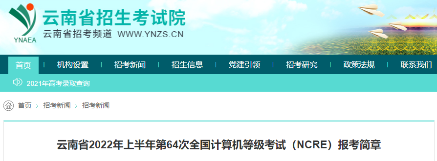 【2022年3月云南計算機(jī)等級考試報名入口】