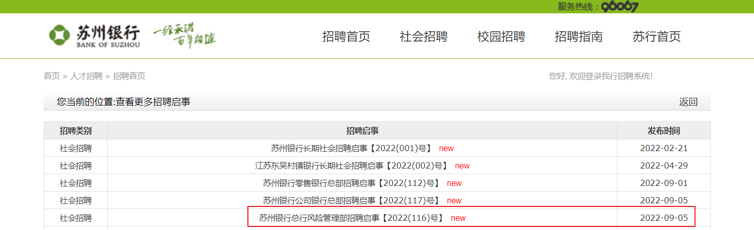 因業(yè)務(wù)發(fā)展需要,現(xiàn)蘇州銀行總行風(fēng)險管理部面向社會公開招聘,真誠邀請敢于接受挑戰(zhàn)、德才兼?zhèn)湔呒用?,攜手共創(chuàng)美好未來!