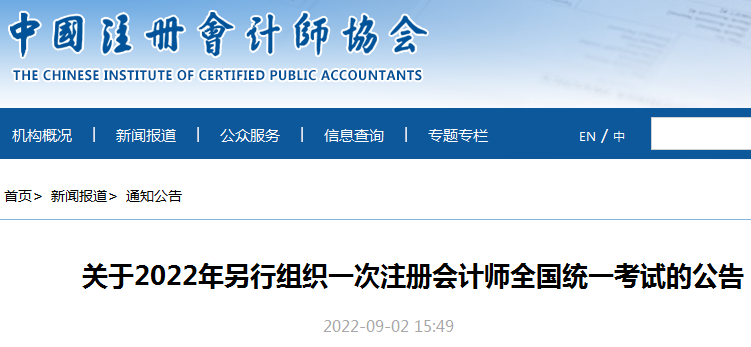 原標題:關(guān)于2022年另行組織一次注冊會計師全國統(tǒng)一考試的公告