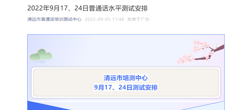 從清遠(yuǎn)市普通話培訓(xùn)測試中心公眾號(hào)獲悉,2022年9月廣東清遠(yuǎn)普通話報(bào)名時(shí)間及考試時(shí)間已公布,報(bào)名時(shí)間9月6日起,考試時(shí)間9月17日起,具體詳情如下: