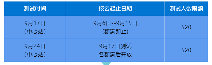 1.計(jì)劃開放的測試場次及報(bào)名時(shí)間: