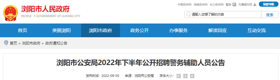 原文標題:瀏陽市公安局2022年下半年公開招聘警務輔助人員公告