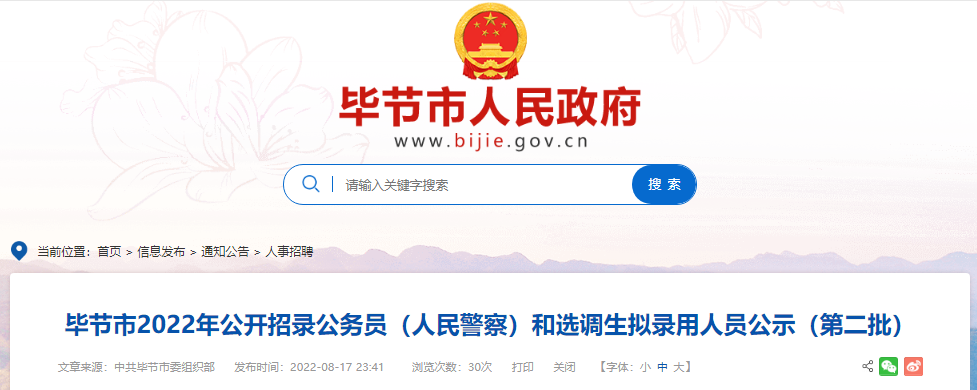 2022年貴州畢節(jié)市公開招錄選調(diào)生擬錄用人員公示(第二批)已公布,為了方便廣大考生的查閱,下面為您詳細介紹一下本次擬錄用人員公示的具體事宜,希望廣大考生及時關(guān)注,如有相關(guān)疑問,請關(guān)注為您實時做出的更新。