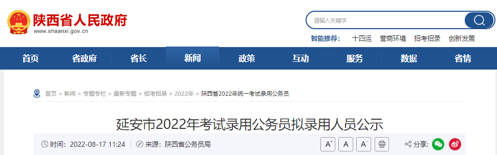 根據(jù)《陜西省2022年統(tǒng)一考試錄用公務(wù)員公告》,現(xiàn)將報(bào)考延安市所屬職位,經(jīng)資格審查、筆試、面試、體檢、考察等程序,擬錄用的315名人員情況予以公示。