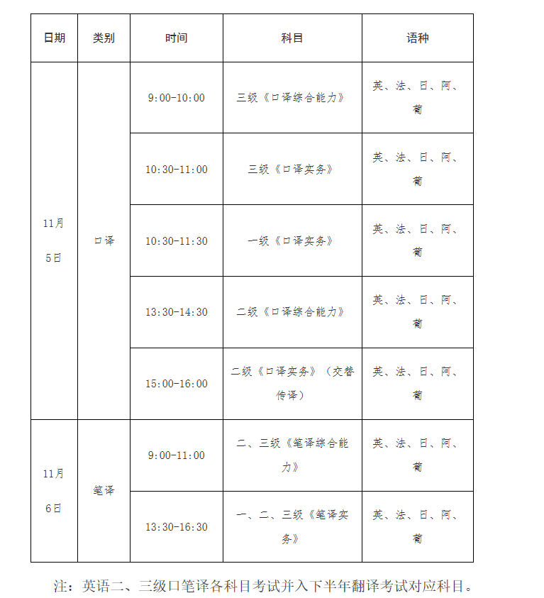 根據(jù)國家考試工作計劃安排,上海市2022年度上半年全國翻譯專業(yè)資格(水平)考試補考于11月5日、6日舉行,與2022年度下半年翻譯專業(yè)資格(水平)考試(以下簡稱“下半年翻譯考試”)合并組織?,F(xiàn)將有關(guān)事項通知如下: