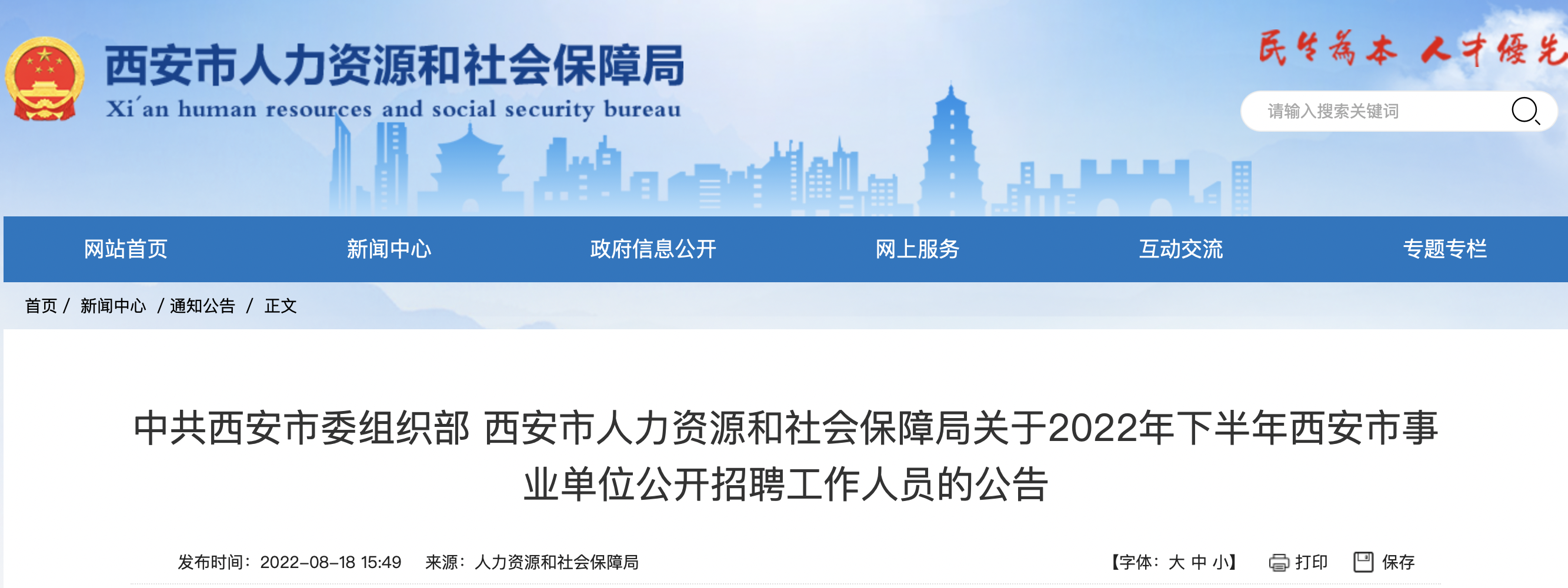 2022年下半年陜西西安市事業(yè)單位工作人員招聘公告【470人】已發(fā)布,網(wǎng)絡(luò)報(bào)名時間為:2022年8月25日8:00至2022年8月27日18:00,現(xiàn)將招聘公告原文發(fā)布如下: