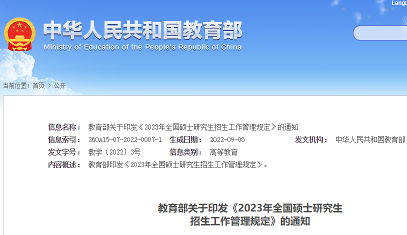 考研頻道從教育部了解到,2023年全國(guó)碩士研究生招生工作管理規(guī)定已公布,具體如下: