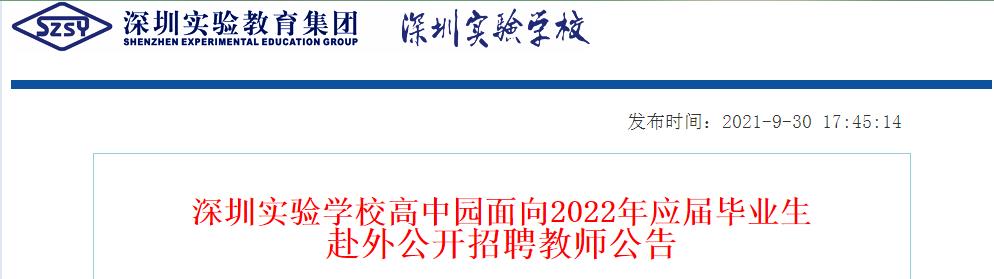 【點擊進入:廣東深圳實驗學校高中園面向2022年應屆畢業(yè)生赴外公開招聘教師報名入口】