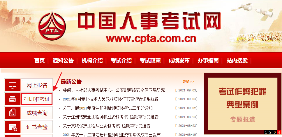 (1)登錄中國人事考試網,點擊準考證打印鏈接,進入“審計專業(yè)技術資格考試網上報名系統(tǒng)”;